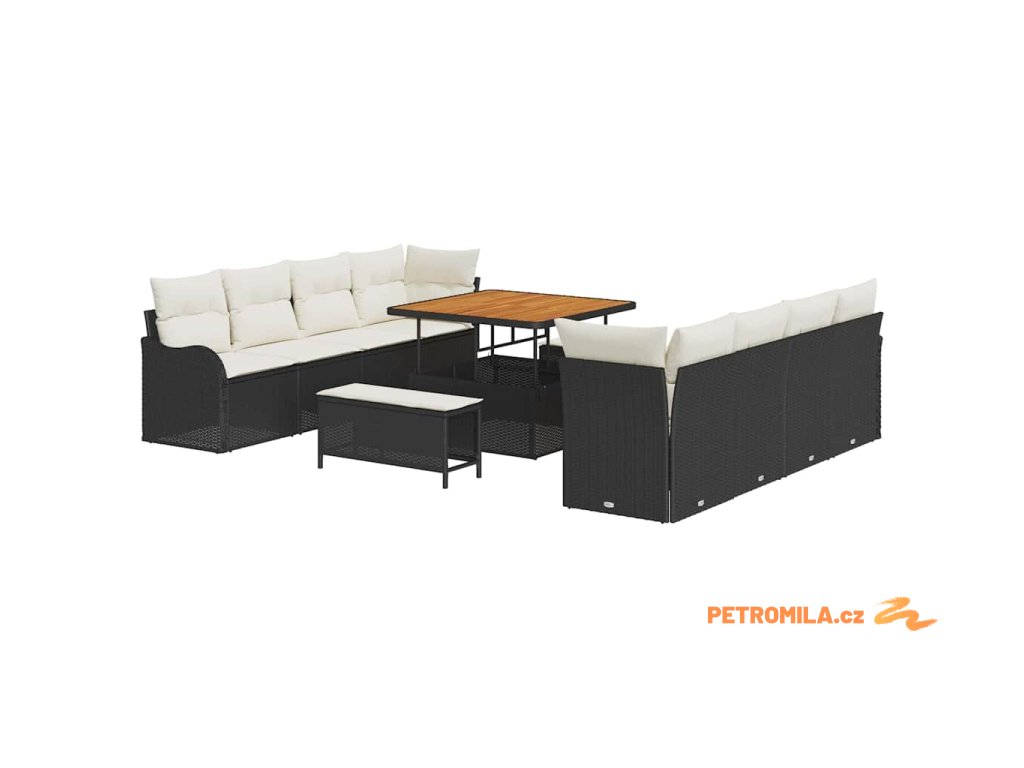 Sada zahradních pohovek s polštářem 11 pcs Černá a krémová