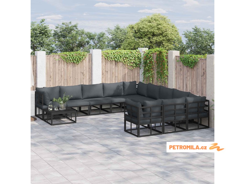 Sada zahradních pohovek s polštářem 11 pcs Černá Hliník