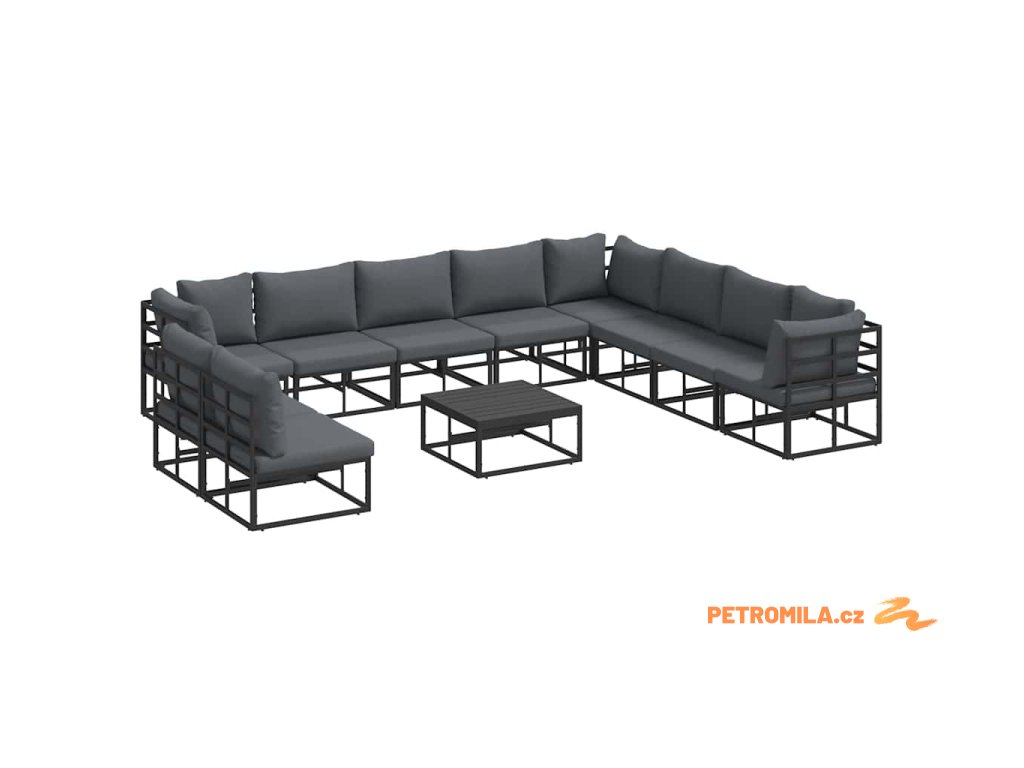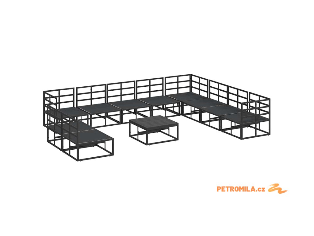 Sada zahradních pohovek s polštářem 11 pcs Černá Hliník