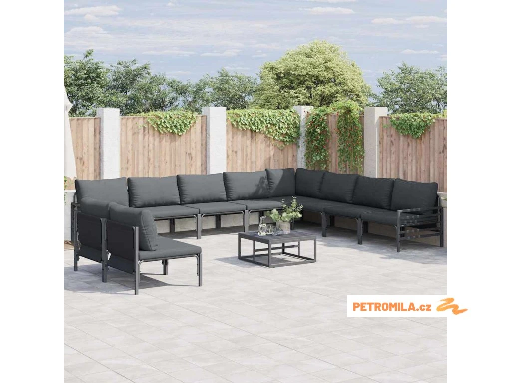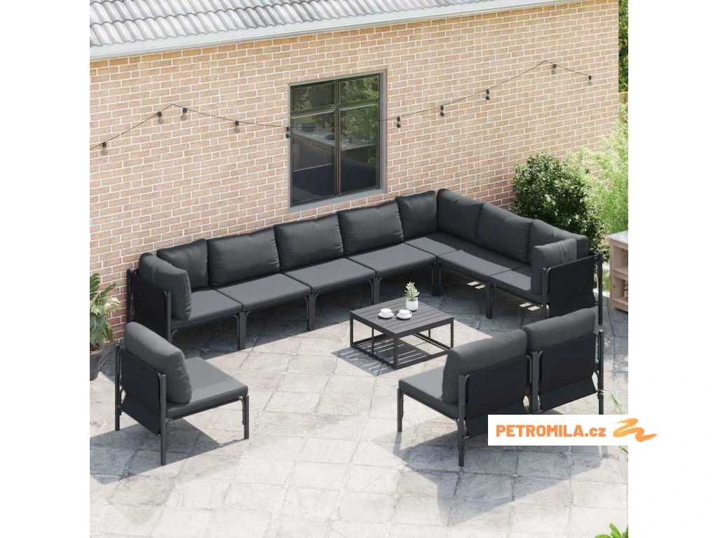 Sada zahradních pohovek s polštářem 11 pcs Černá Ocel