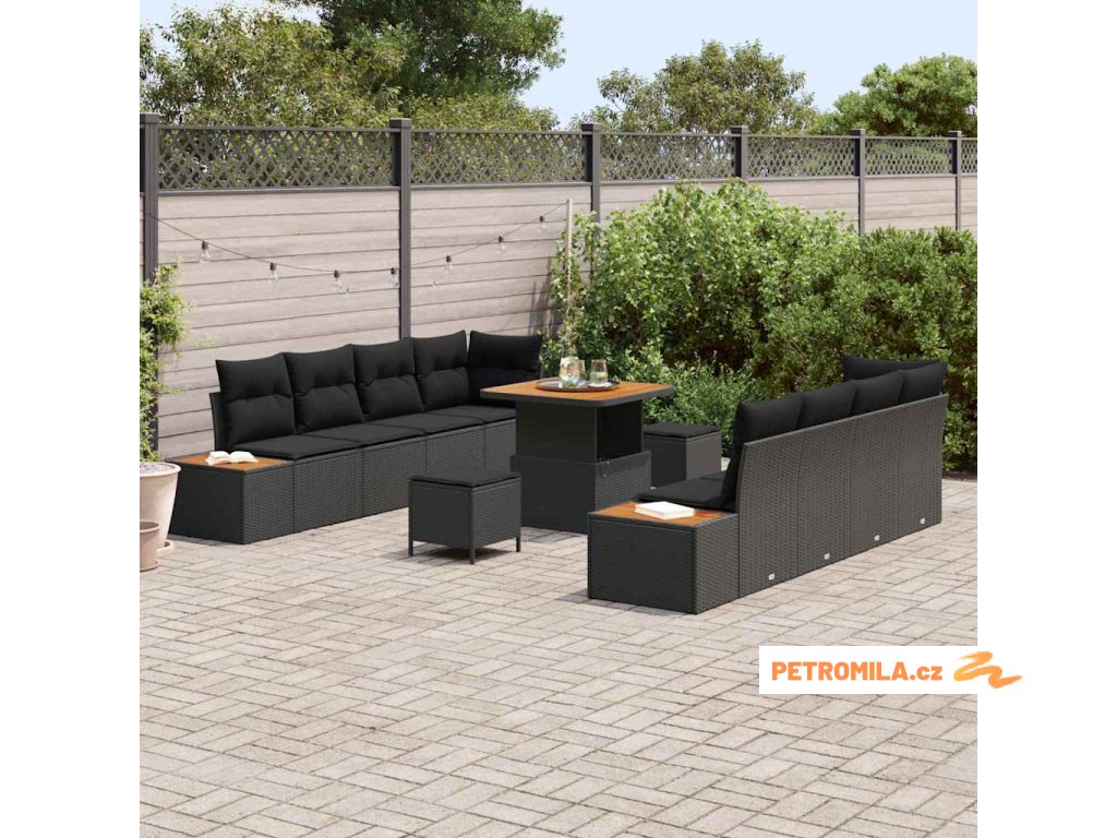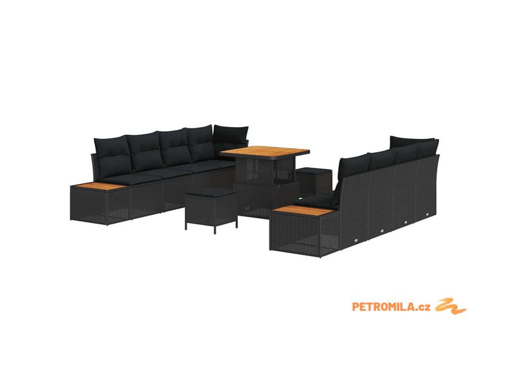 Sada zahradních pohovek s polštářem 11 pcs Černá Poly ratan