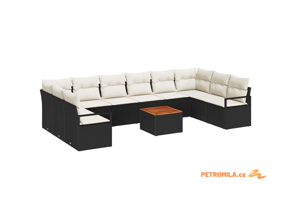 Sada zahradních pohovek s polštářem 11 pcs Černá polyratan