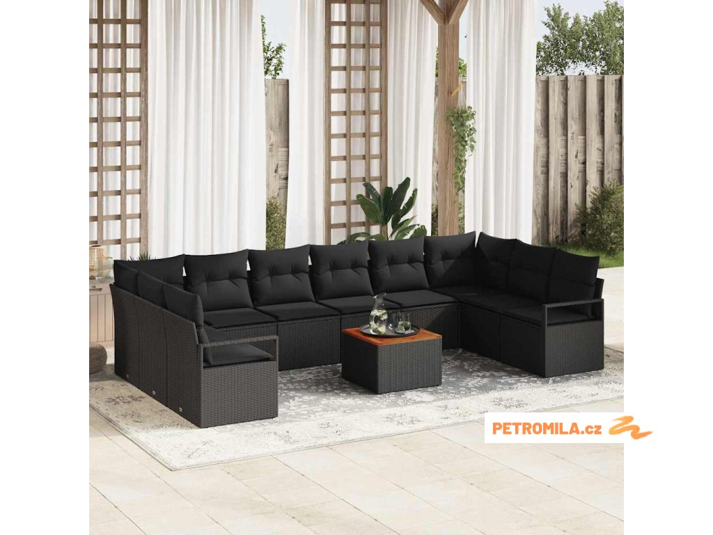 Sada zahradních pohovek s polštářem 11 pcs Černá polyratan