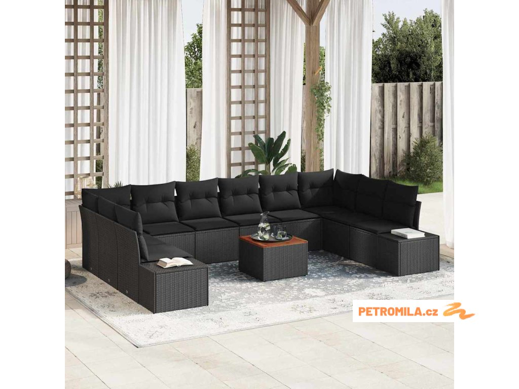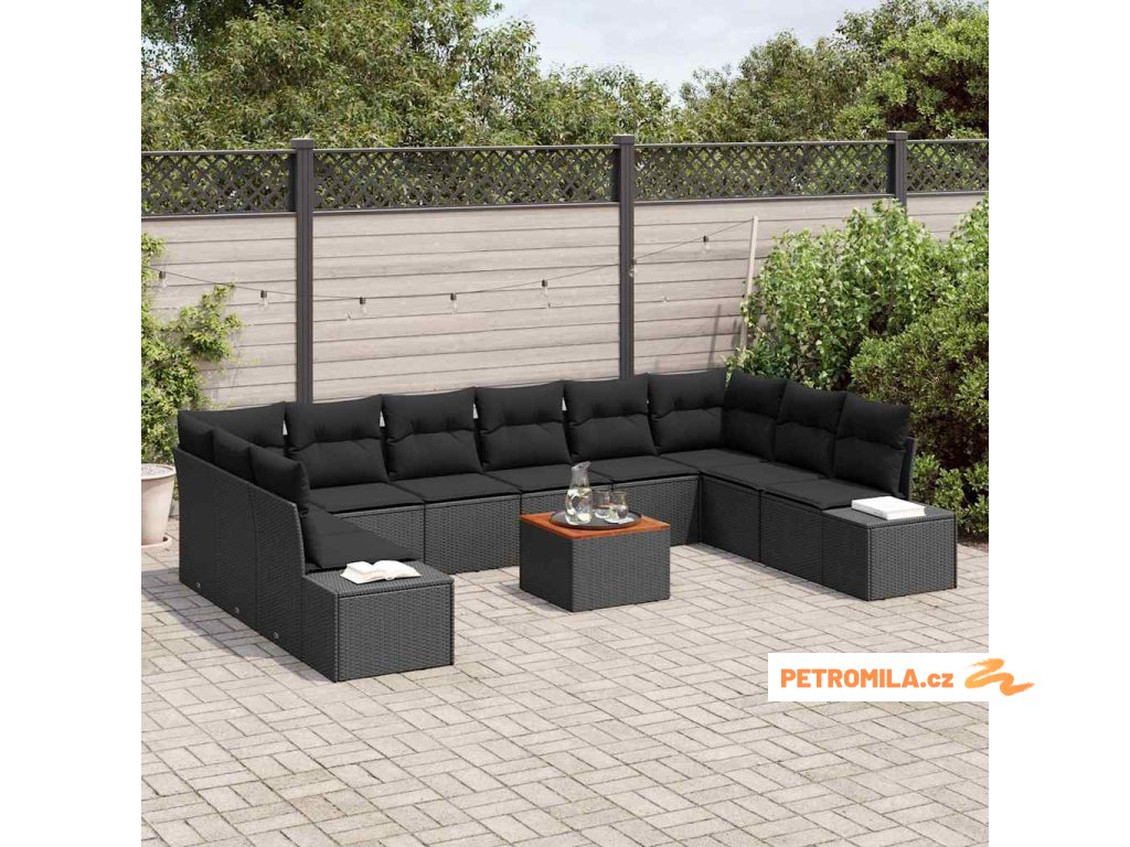 Sada zahradních pohovek s polštářem 11 pcs Černá polyratan