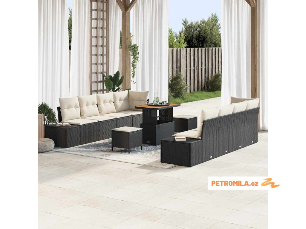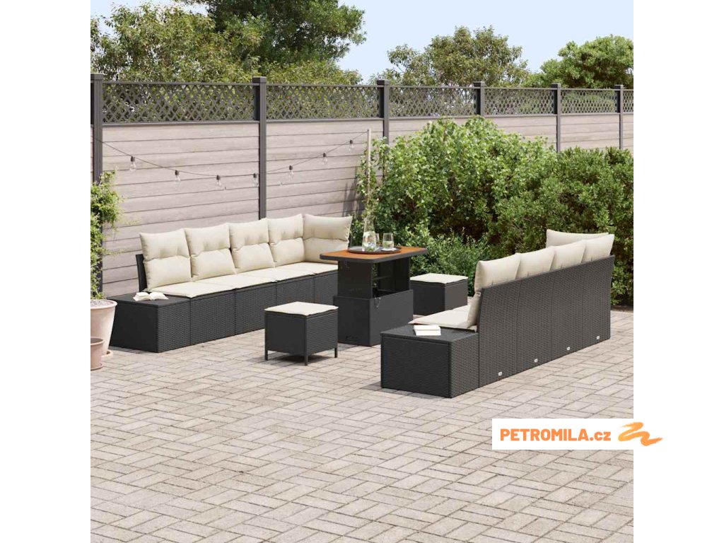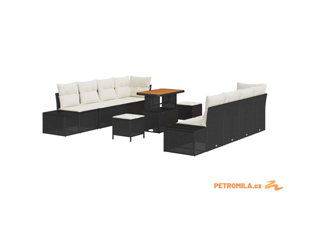Sada zahradních pohovek s polštářem 11 pcs Černá polyratan