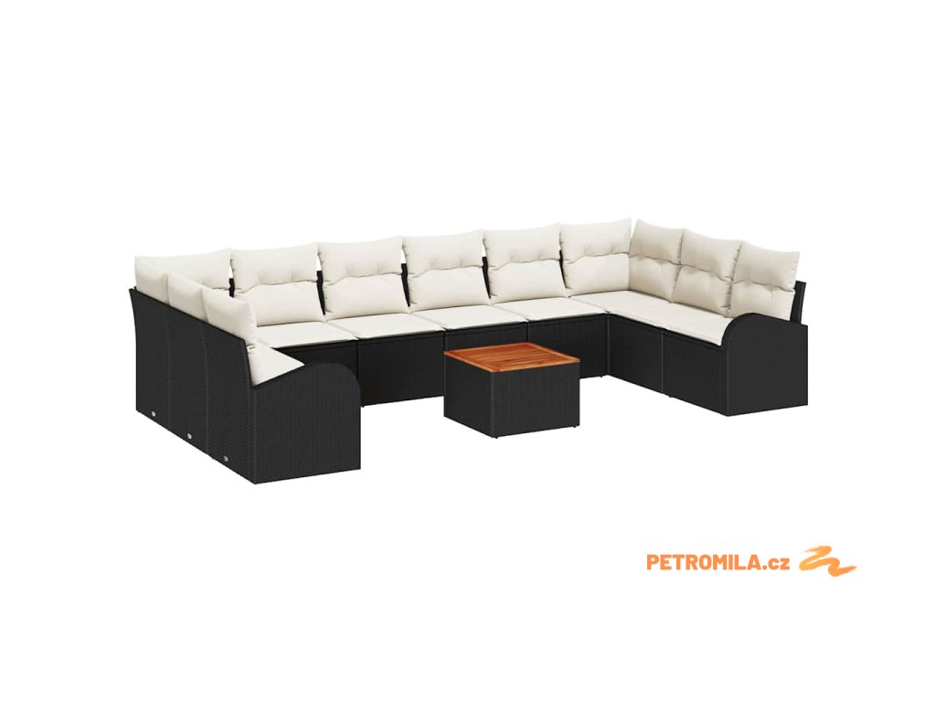 Sada zahradních pohovek s polštářem 11 pcs Černá polyratan