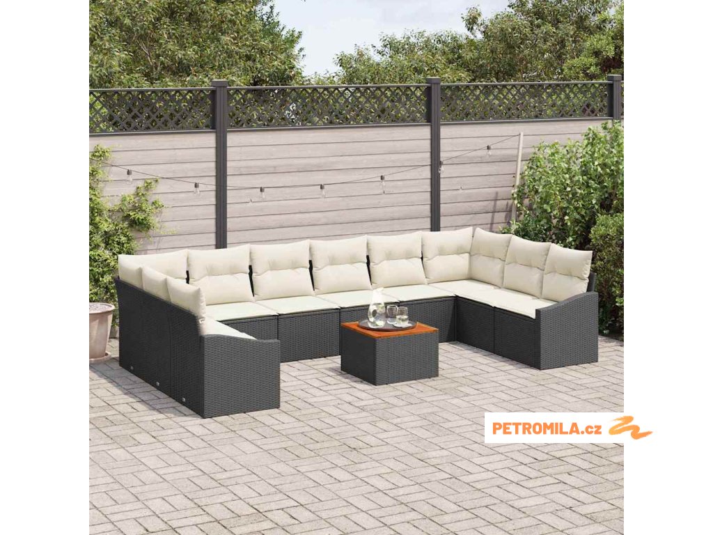 Sada zahradních pohovek s polštářem 11 pcs Černá polyratan