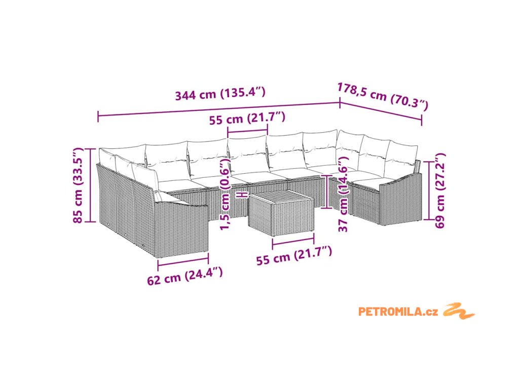 Tento modulový zahradní set pozvedne vaše venkovní místo a přináší moderní styl a praktičnost. Vyrábí se z kvalitních materiálů, takže nabízejí pohodlné posezení na slunci, ideální pro terasy a zahrady. Skvěle se hodí pro velká setkání nebo pro pokojné chvíle s čajem a knihou.