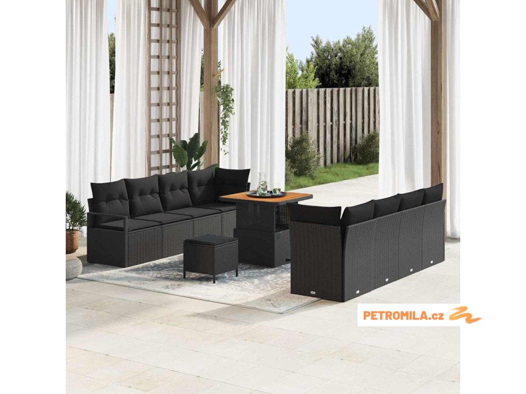Sada zahradních pohovek s polštářem 11 pcs Černá polyratan