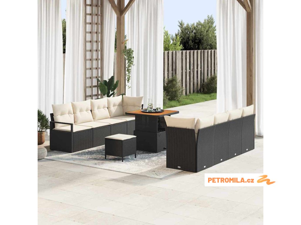 Sada zahradních pohovek s polštářem 11 pcs Černá polyratan