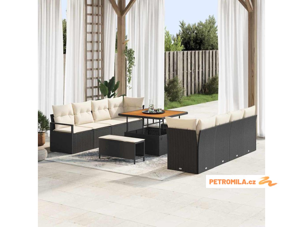 Sada zahradních pohovek s polštářem 11 pcs Černá polyratan
