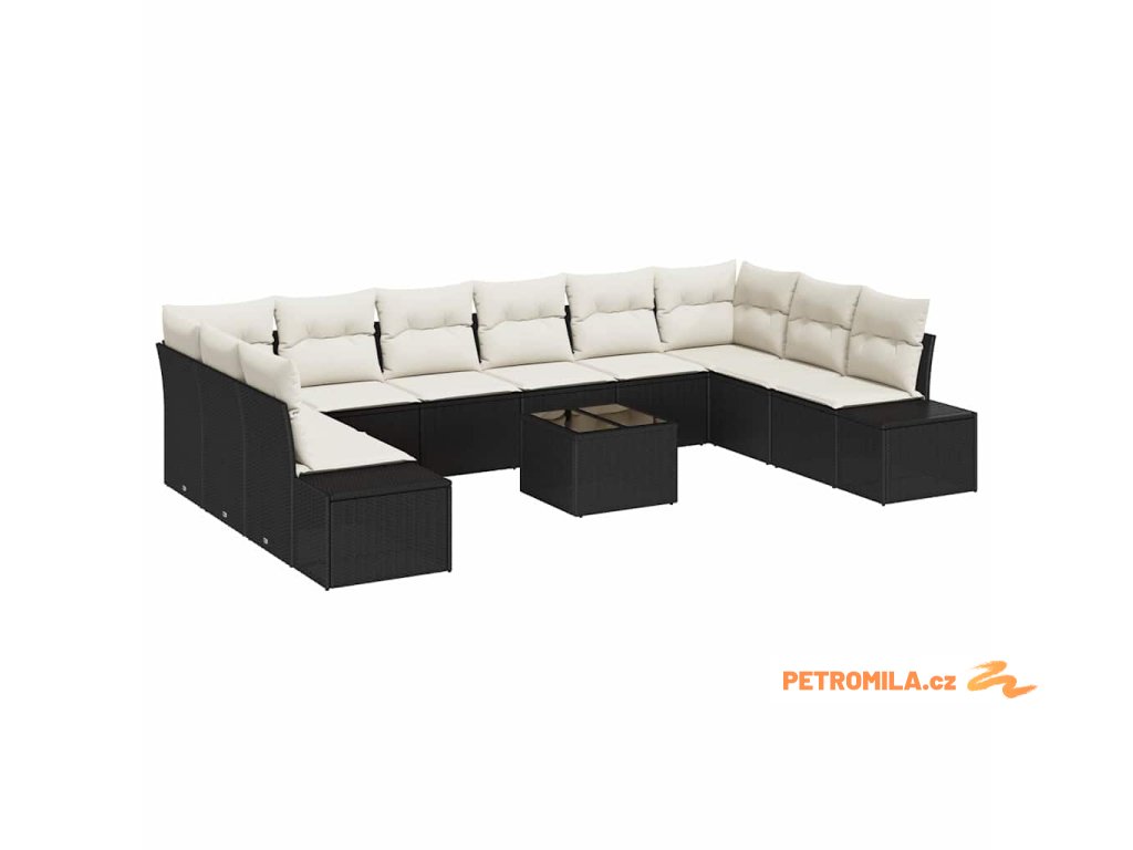 Sada zahradních pohovek s polštářem 11 pcs Černá polyratan
