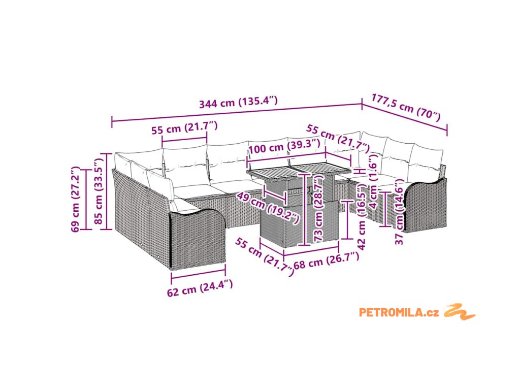 Sestava pohovek kombinuje moderní design s top funkcionalitou. Je navržená tak, aby oživila jakoukoli venkovní plochu svým stylovým vzhledem. Obsahuje pohovky s područkami, rohová a středová sedadla, vše s praktickým úložným prostorem a pohodlnými polštáři pro maximální relaxaci. Tkaná textura a čisté linie dodávají jedinečný nádech, ideální pro moderní terasy a zahrady.