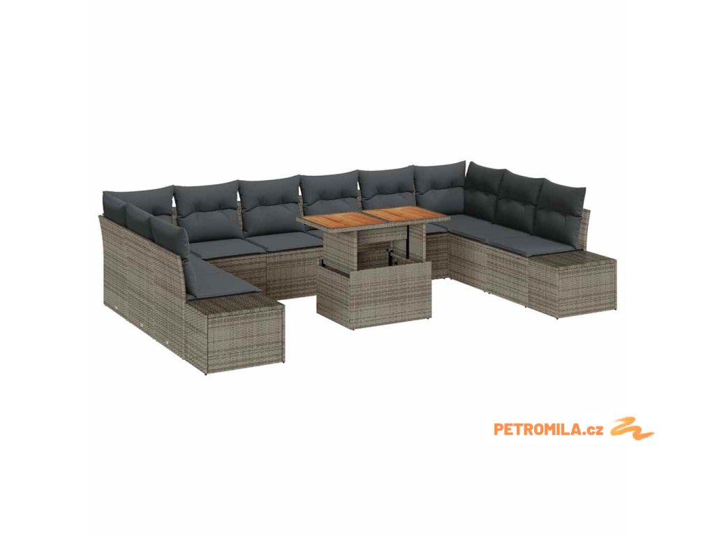 Sada zahradních pohovek s polštářem 11 pcs Šedá a hnědá