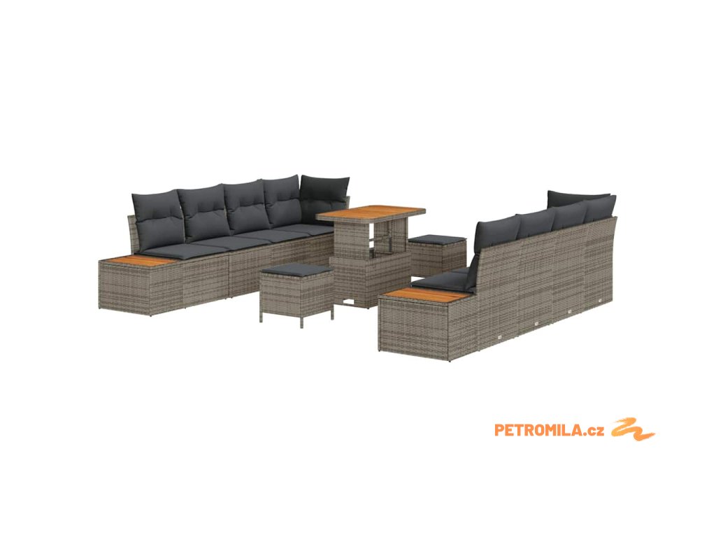 Sada zahradních pohovek s polštářem 11 pcs Šedá Poly ratan