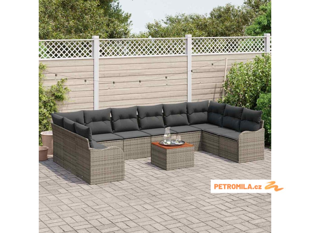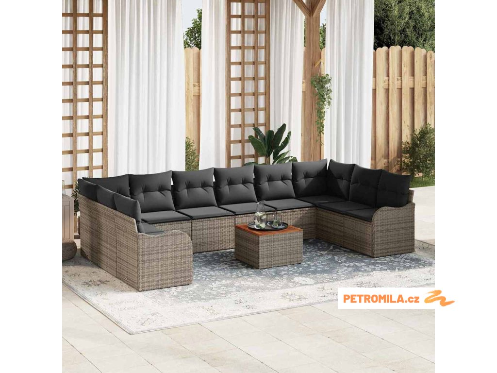 Sada zahradních pohovek s polštářem 11 pcs Šedá polyratan
