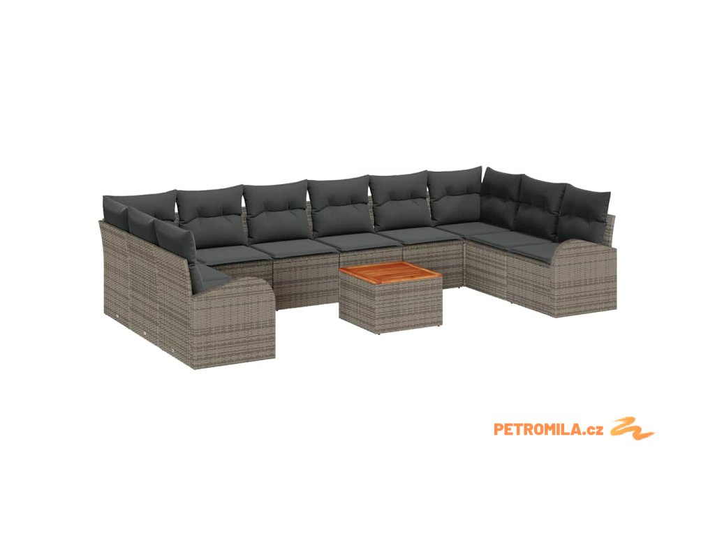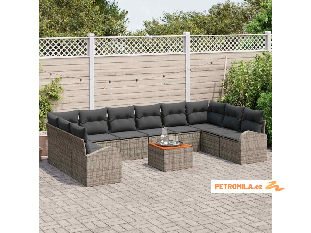 Sada zahradních pohovek s polštářem 11 pcs Šedá polyratan
