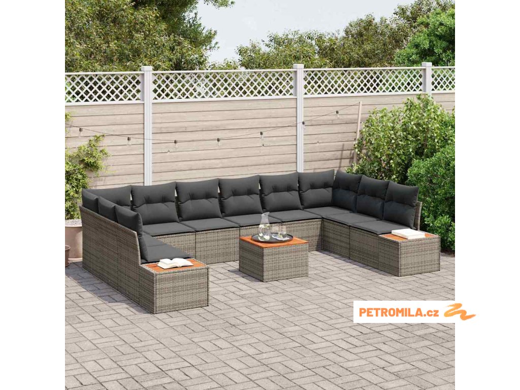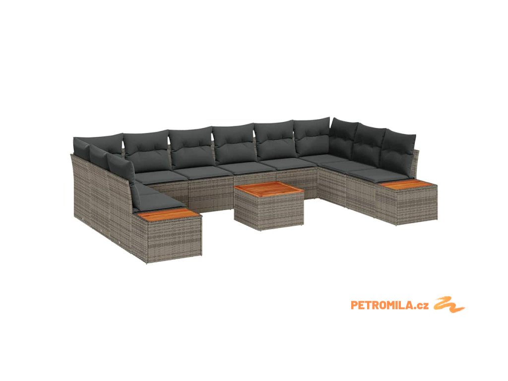 Sada zahradních pohovek s polštářem 11 pcs Šedá polyratan