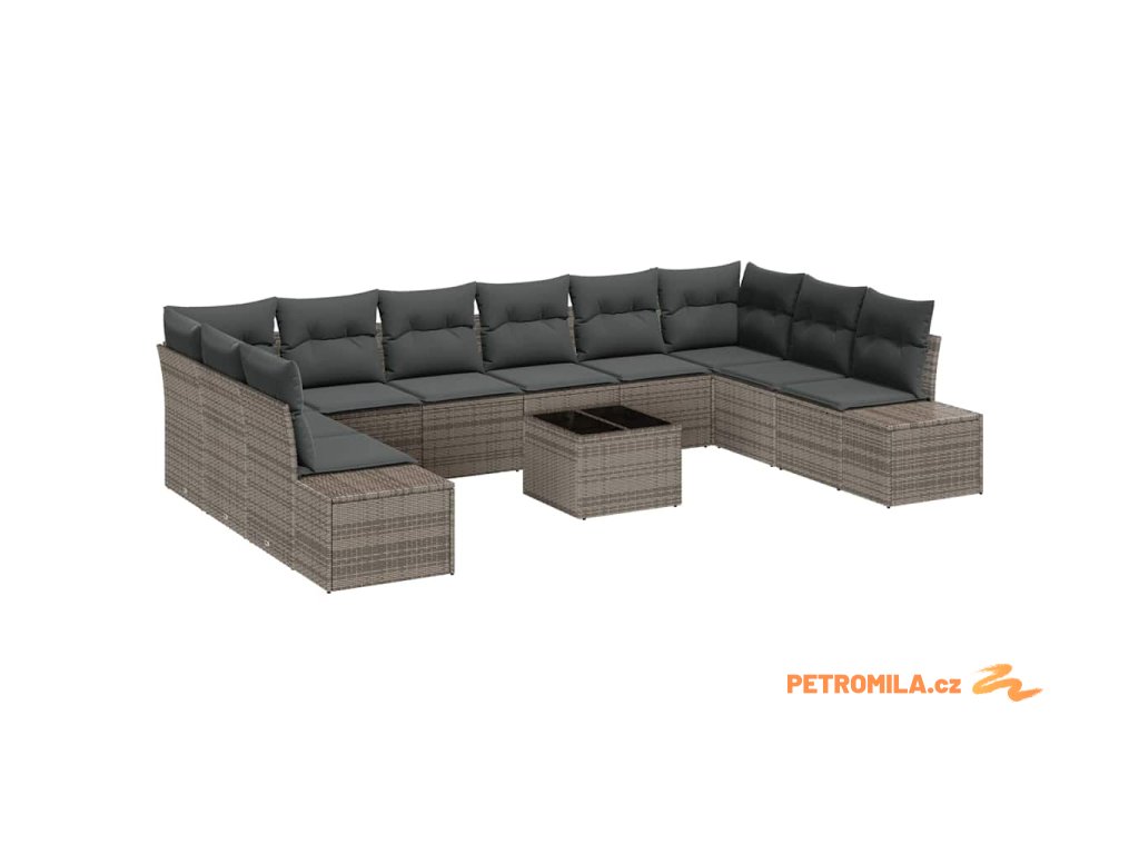 Sada zahradních pohovek s polštářem 11 pcs Šedá polyratan