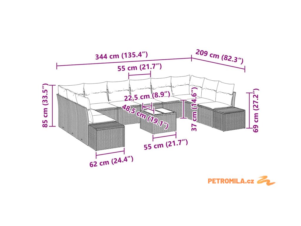 - 6 x Středový sedák: 55 x 62 x 69 cm (D x Š x V)