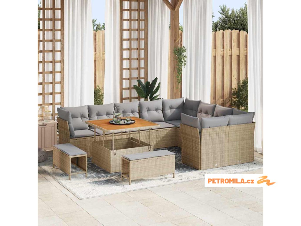 Sada zahradních pohovek s polštářem 12 pcs béžová a světle šedá