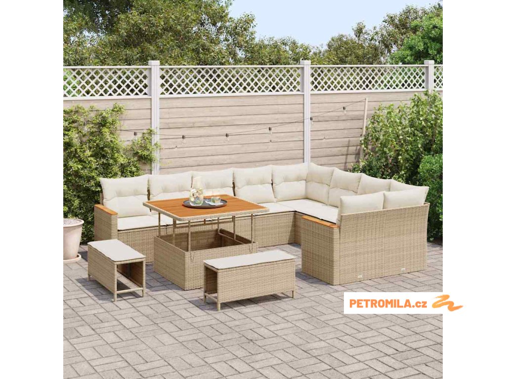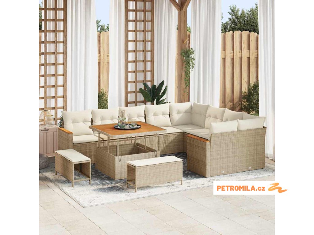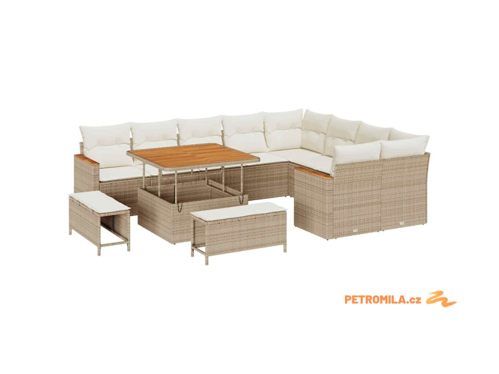Sada zahradních pohovek s polštářem 12 pcs Béžová Poly Ratan