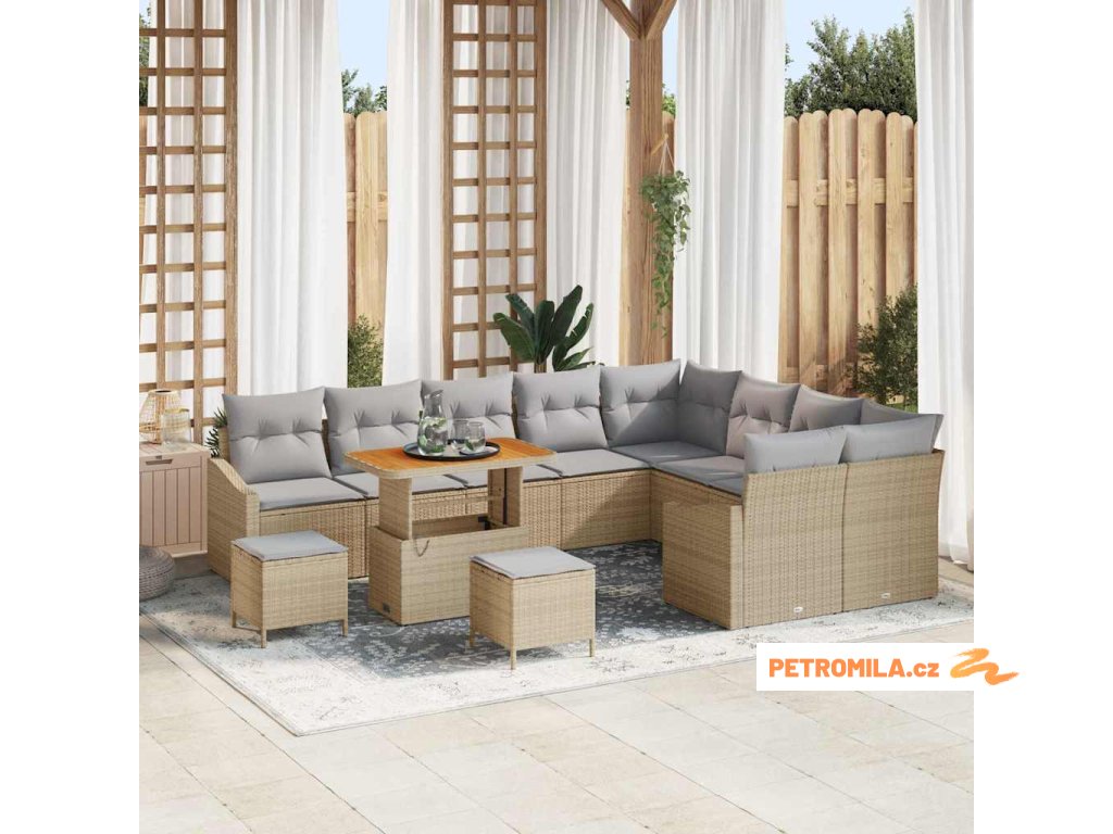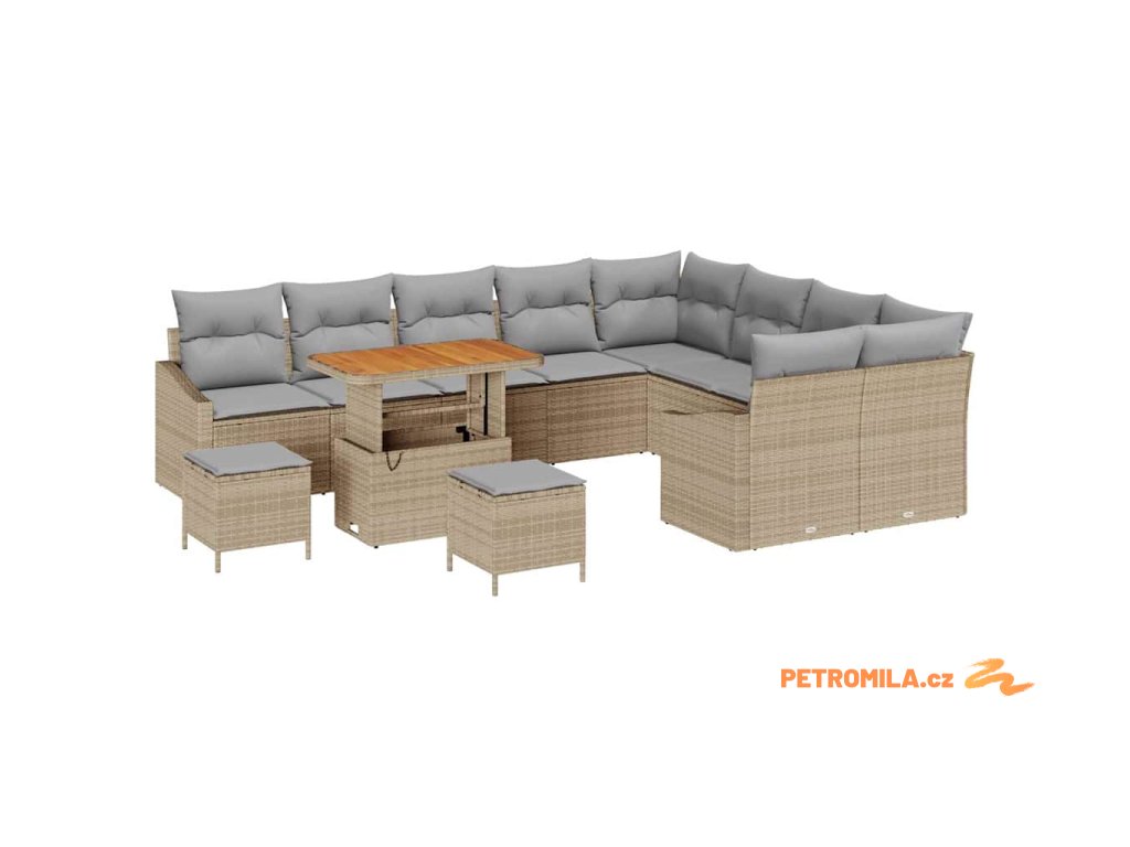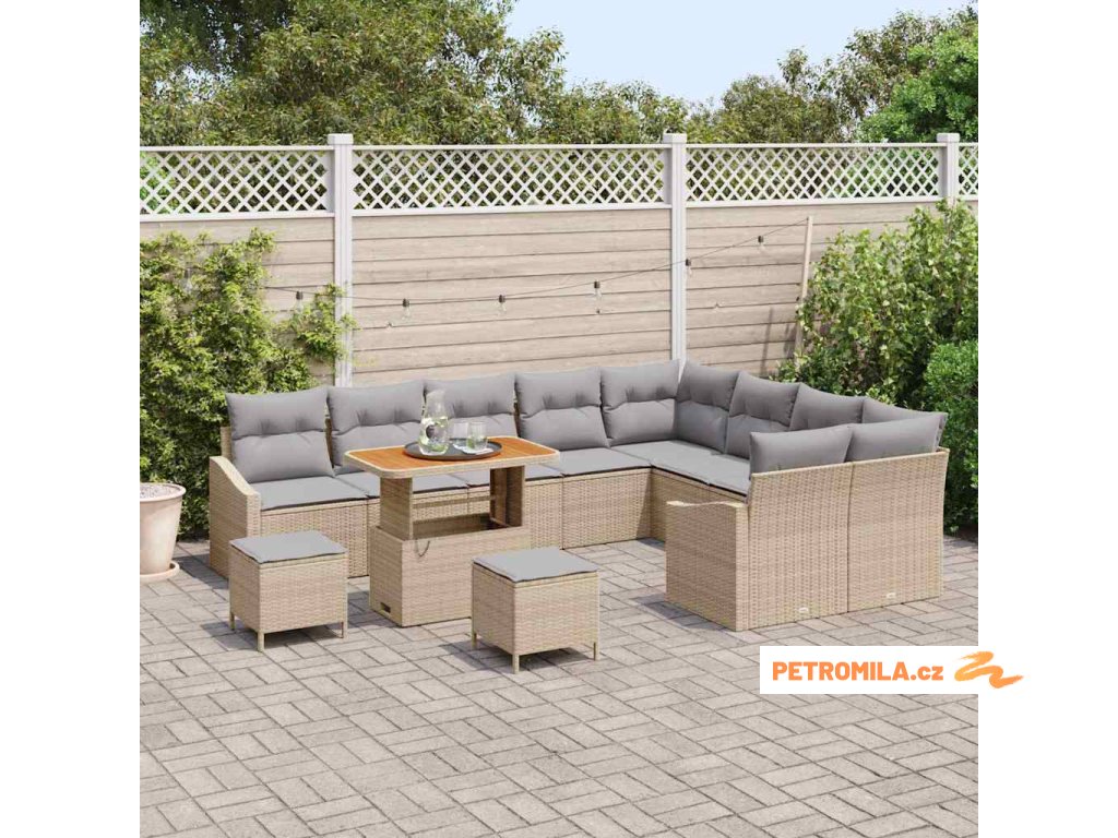Sada zahradních pohovek s polštářem 12 pcs Béžová Poly ratan