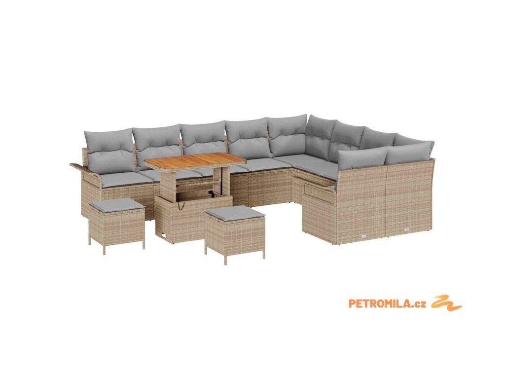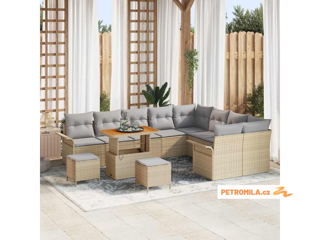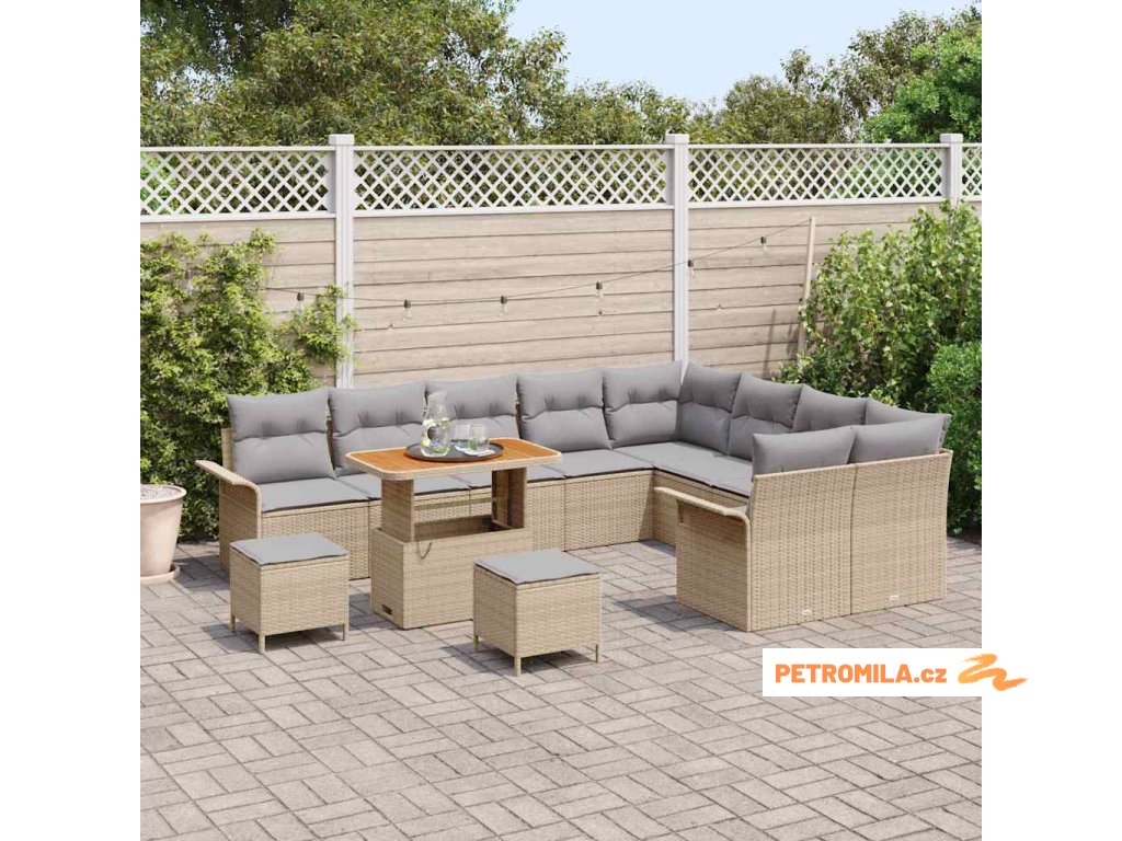 Sada zahradních pohovek s polštářem 12 pcs Béžová polyratan