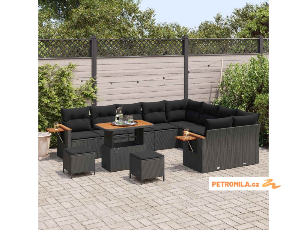 Sada zahradních pohovek s polštářem 12 pcs Černá