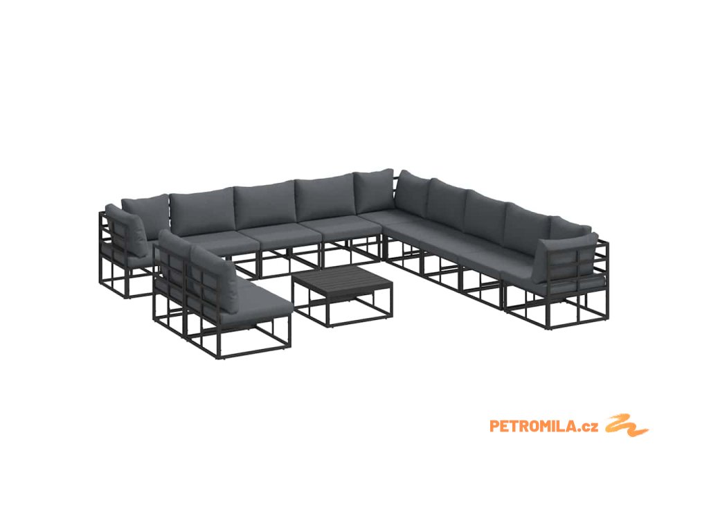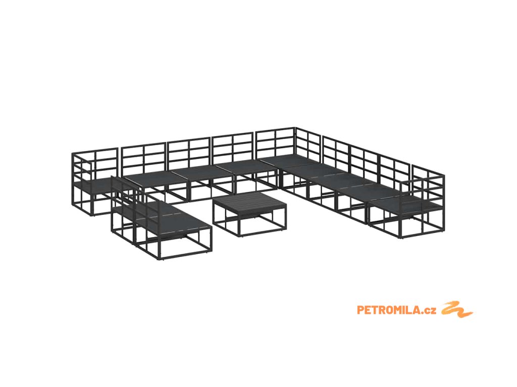 Sada zahradních pohovek s polštářem 12 pcs Černá Hliník