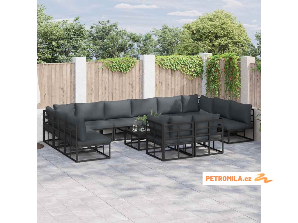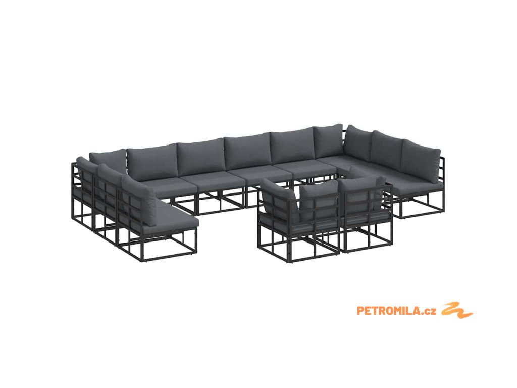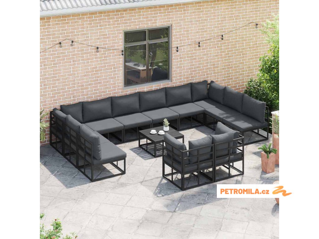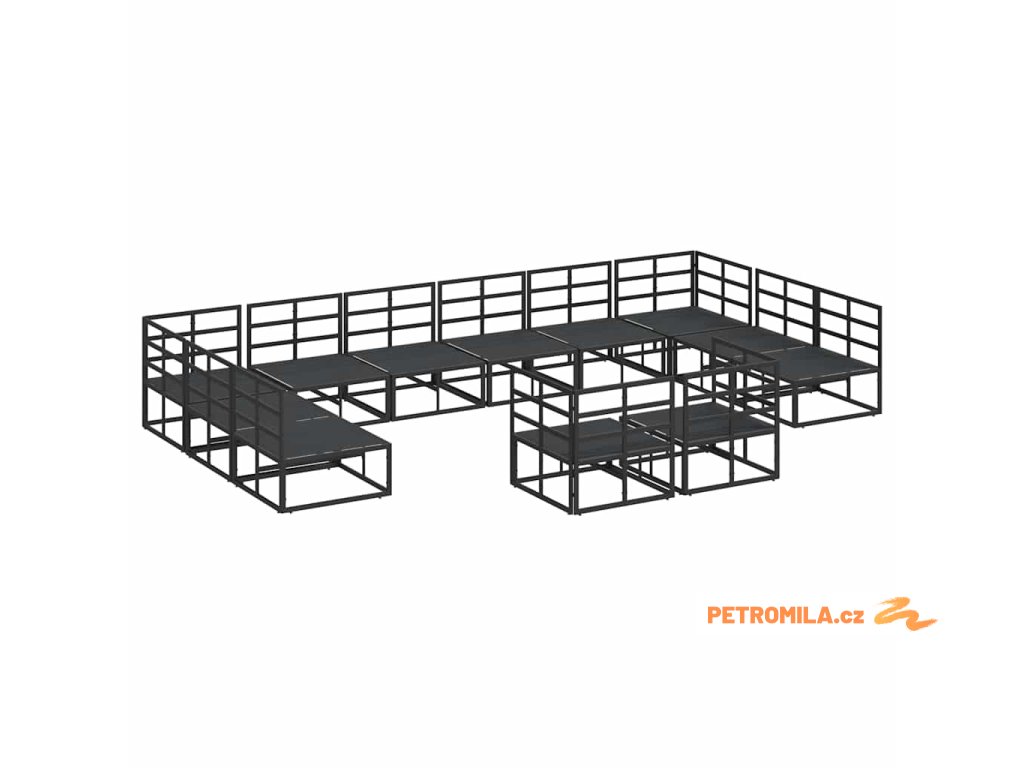 Sada zahradních pohovek s polštářem 12 pcs Černá Hliník