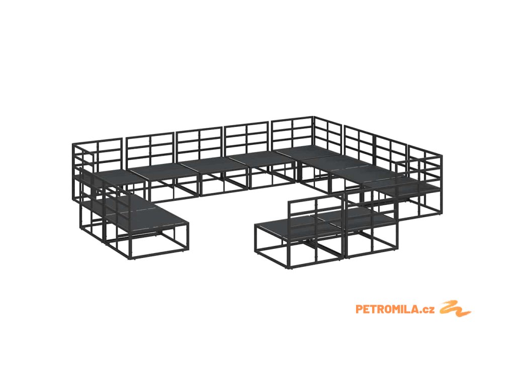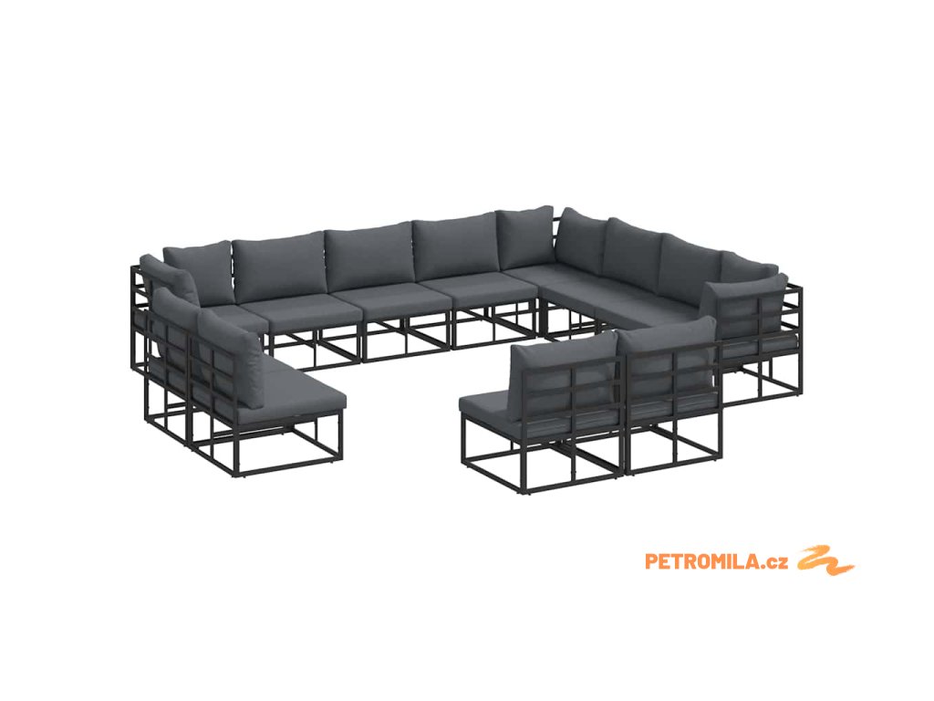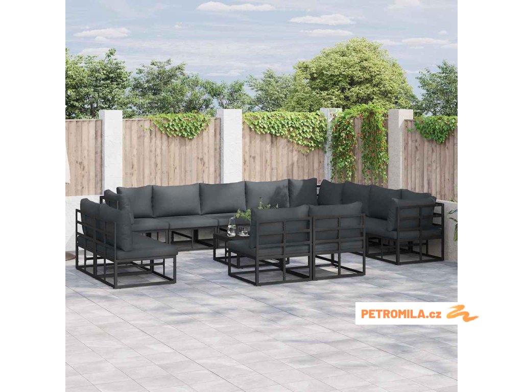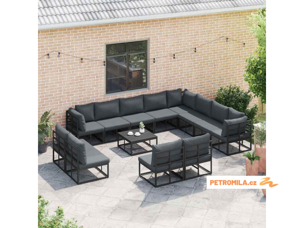 Sada zahradních pohovek s polštářem 12 pcs Černá Hliník