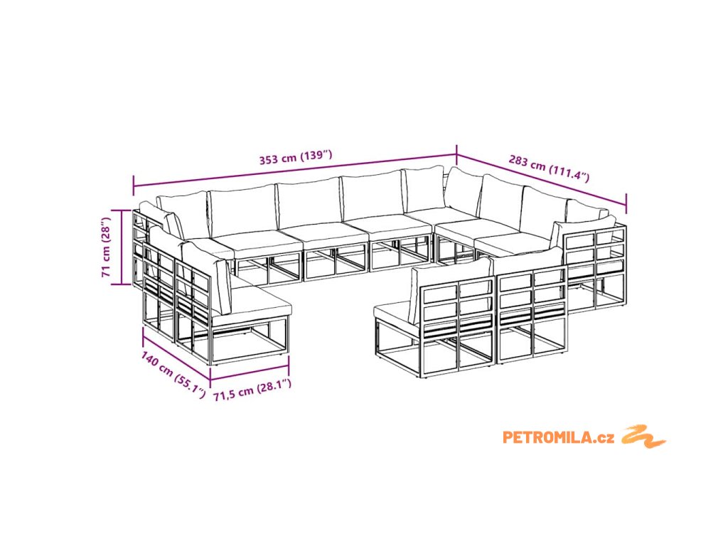 - Zahrnuté komponenty: Tento sofistikovaný set zahrnuje více variant sezení s odnímatelnými a pratelnými potahy, což zajišťuje snadnou údržbu. Modulární povaha umožňuje přizpůsobit a rozšířit sezení podle potřeby, což jej činí přizpůsobitelným různým setkáním a venkovním prostorům.