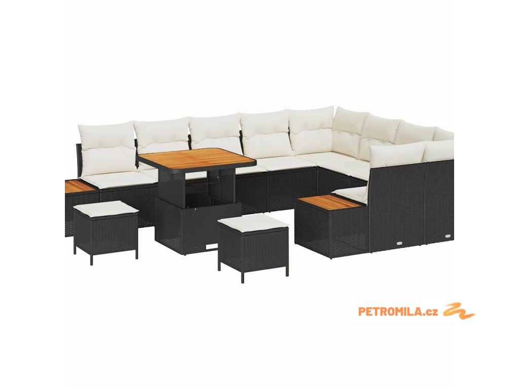 Sada zahradních pohovek s polštářem 12 pcs Černá Poly ratan