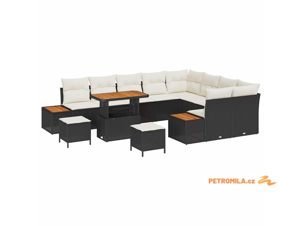 Sada zahradních pohovek s polštářem 12 pcs Černá Poly ratan