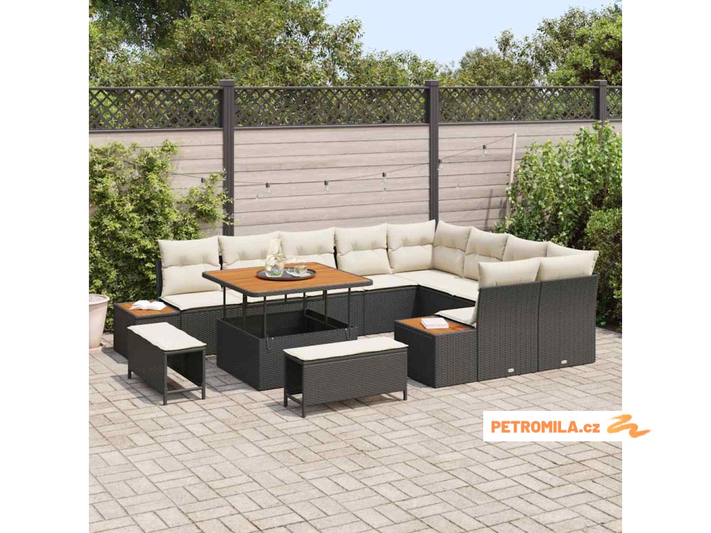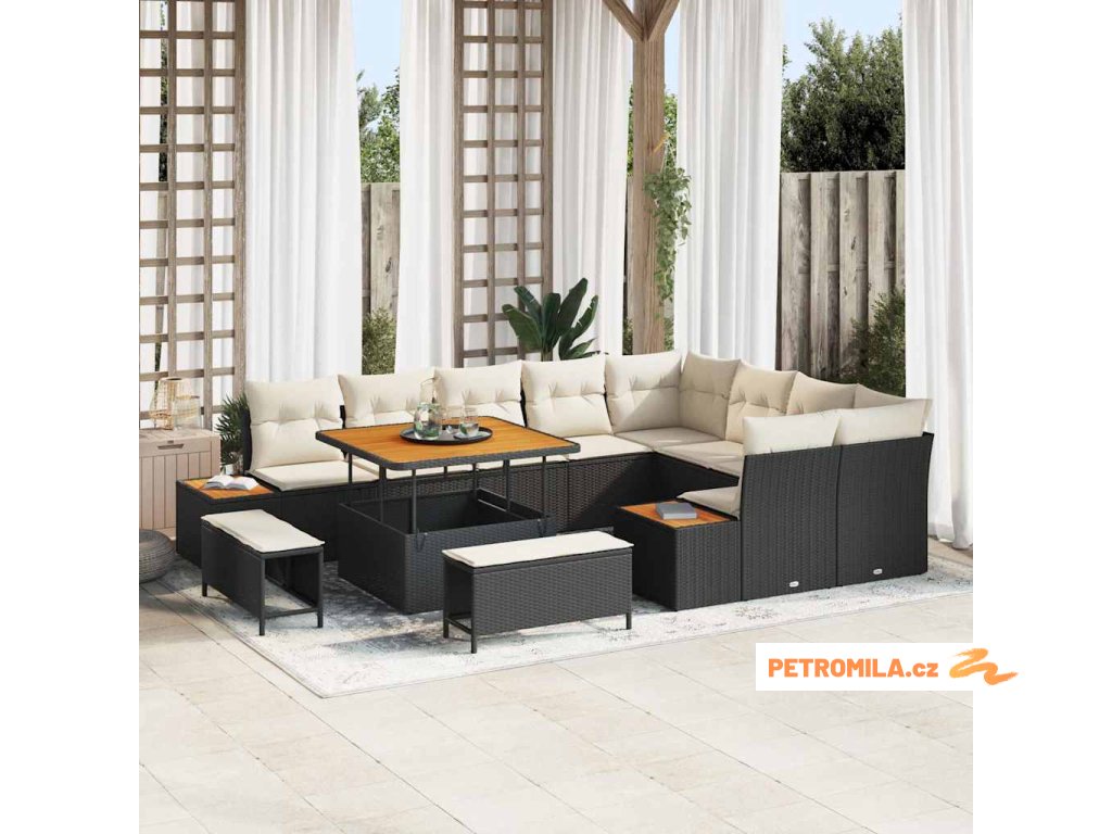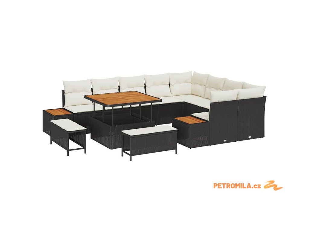Sada zahradních pohovek s polštářem 12 pcs Černá Poly ratan