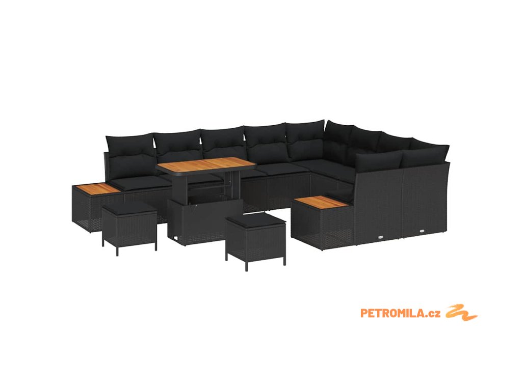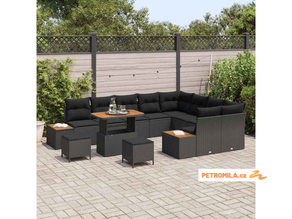 Sada zahradních pohovek s polštářem 12 pcs Černá Poly ratan