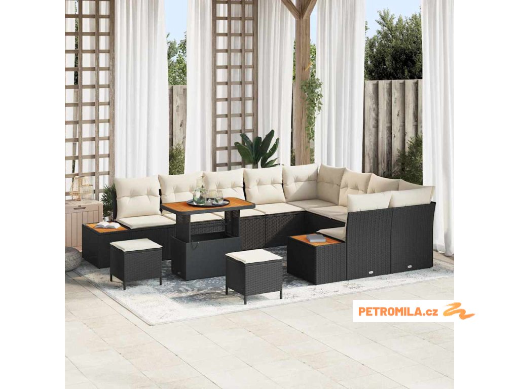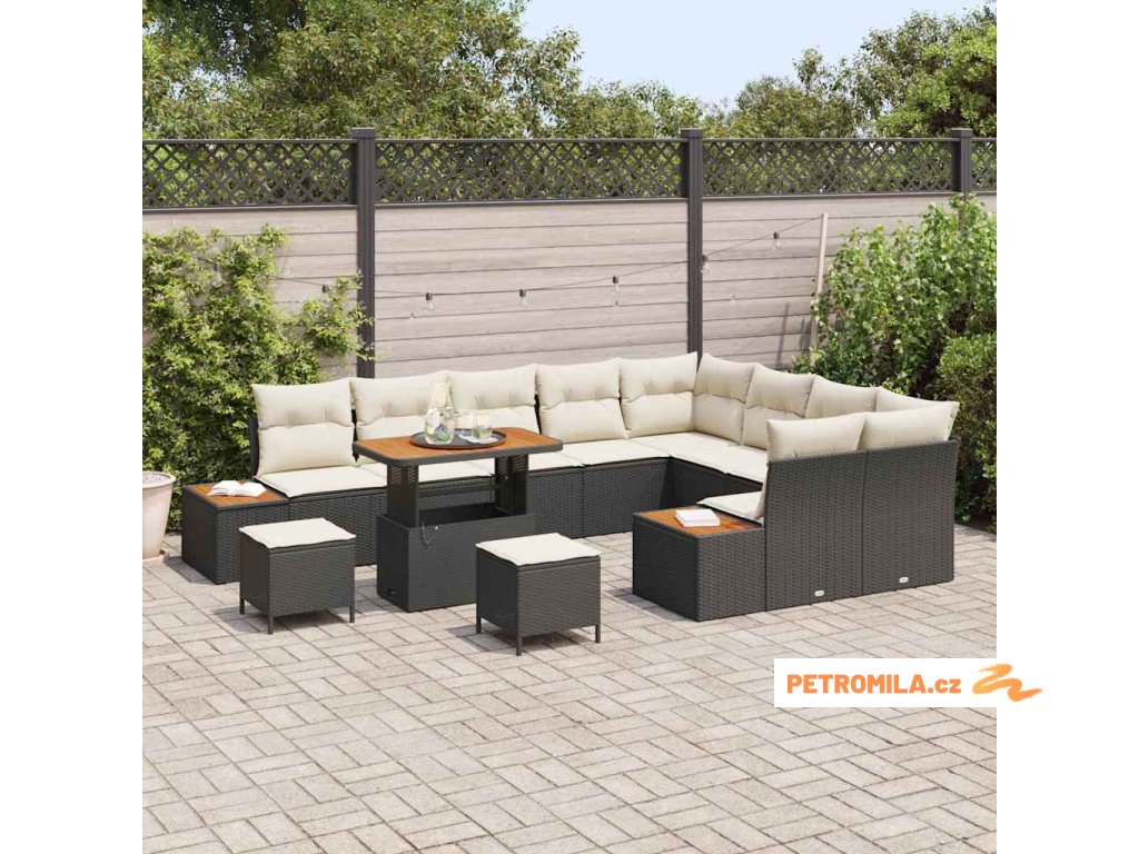 Sada zahradních pohovek s polštářem 12 pcs Černá Poly ratan