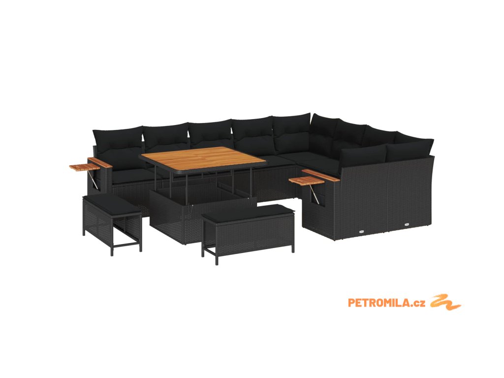 Sada zahradních pohovek s polštářem 12 pcs Černá