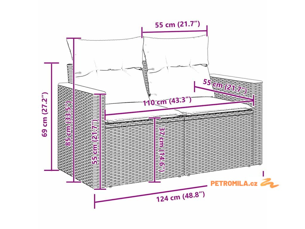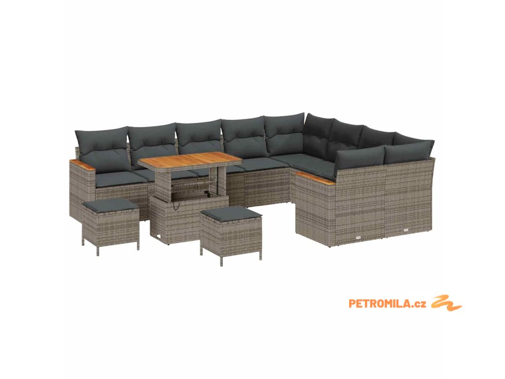 Sada zahradních pohovek s polštářem 12 pcs Šedá Poly ratan