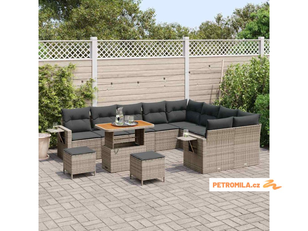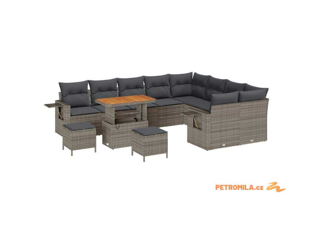 Sada zahradních pohovek s polštářem 12 pcs Šedá polyratan