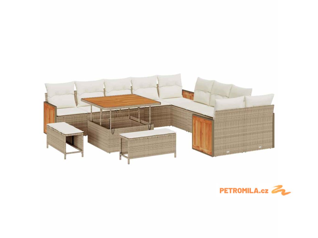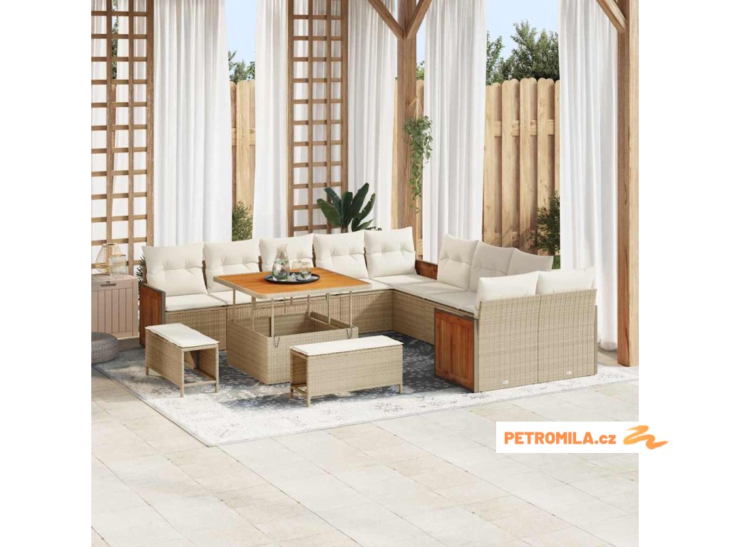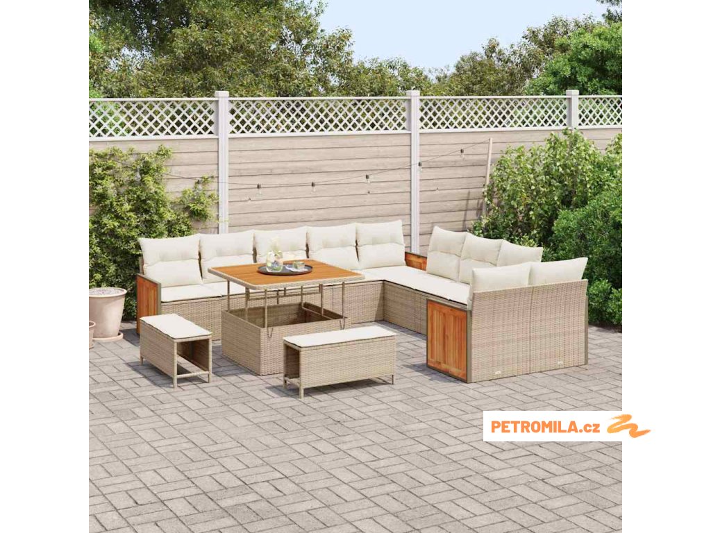Sada zahradních pohovek s polštářem 13 pcs béžová a krémová
