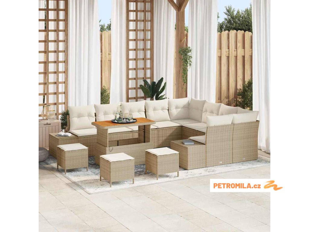 Sada zahradních pohovek s polštářem 13 pcs Béžová a krémová
