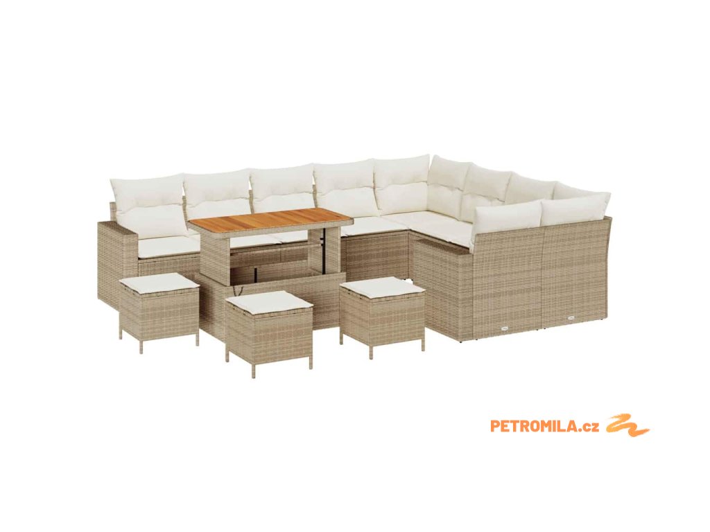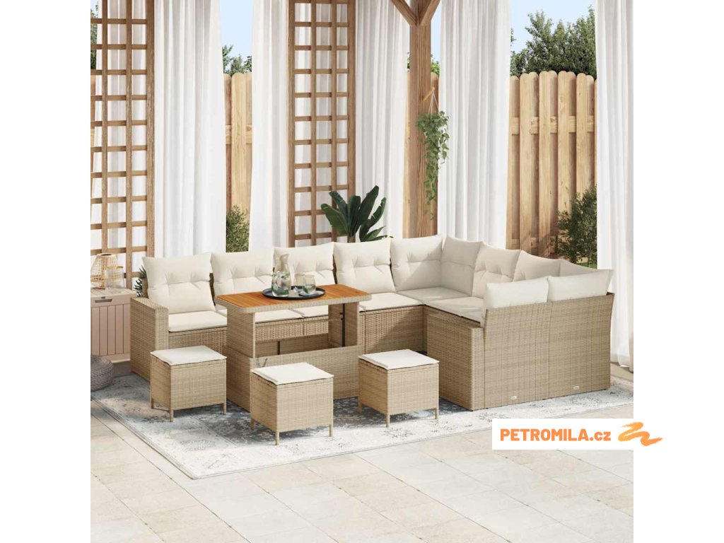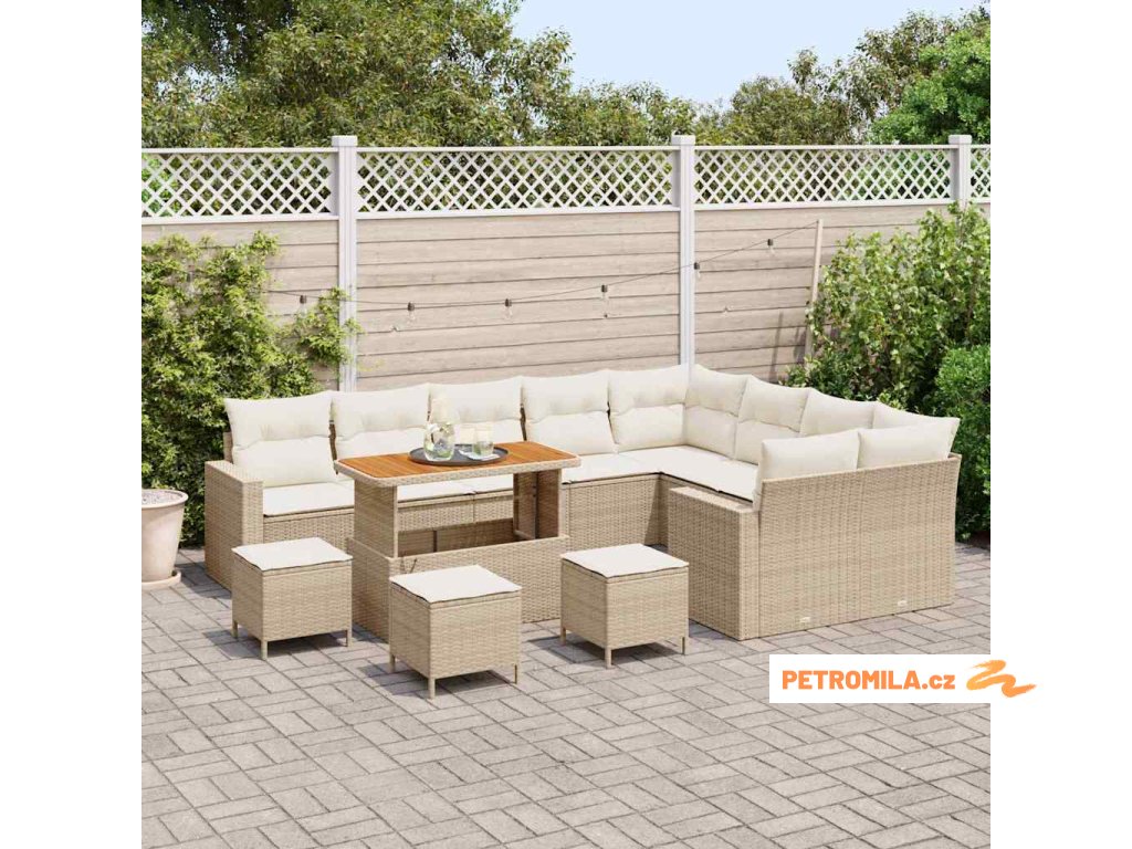 Sada zahradních pohovek s polštářem 13 pcs béžová a krémová