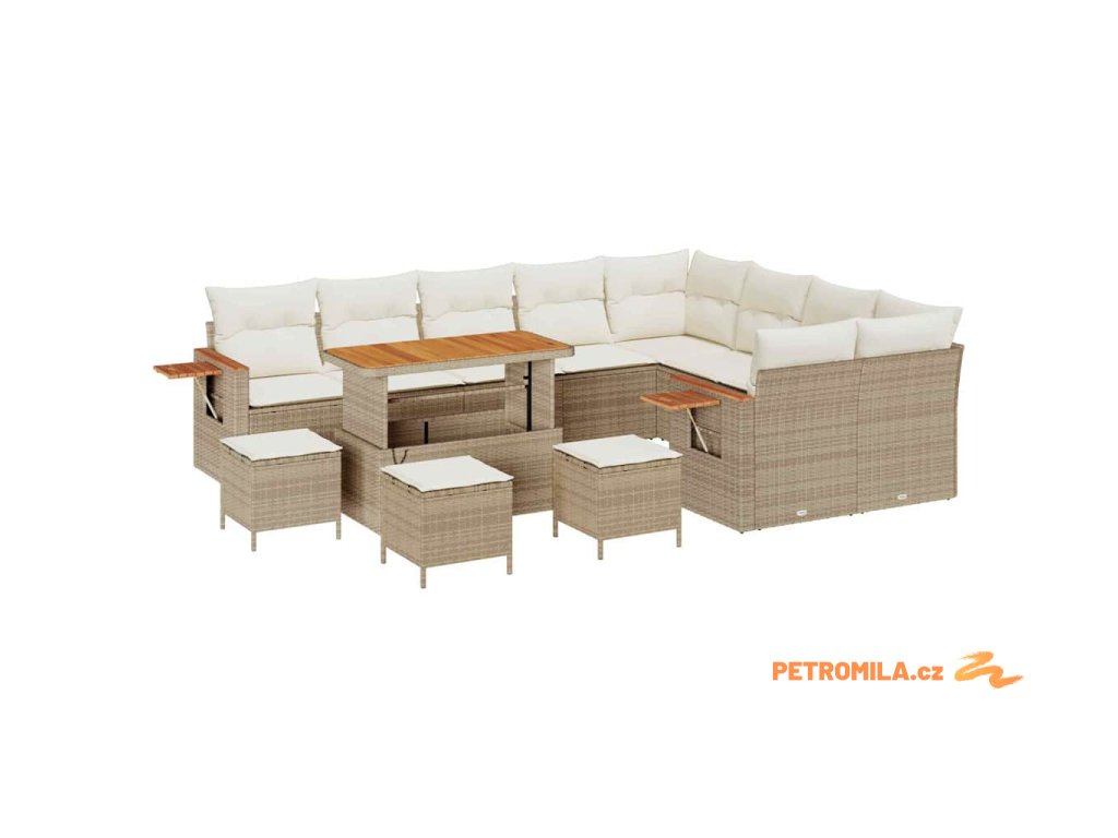 Sada zahradních pohovek s polštářem 13 pcs béžová a krémová
