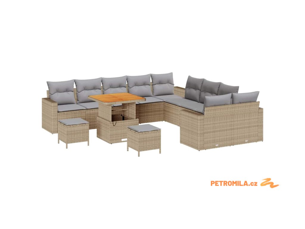 Sada zahradních pohovek s polštářem 13 pcs béžová a světle šedá