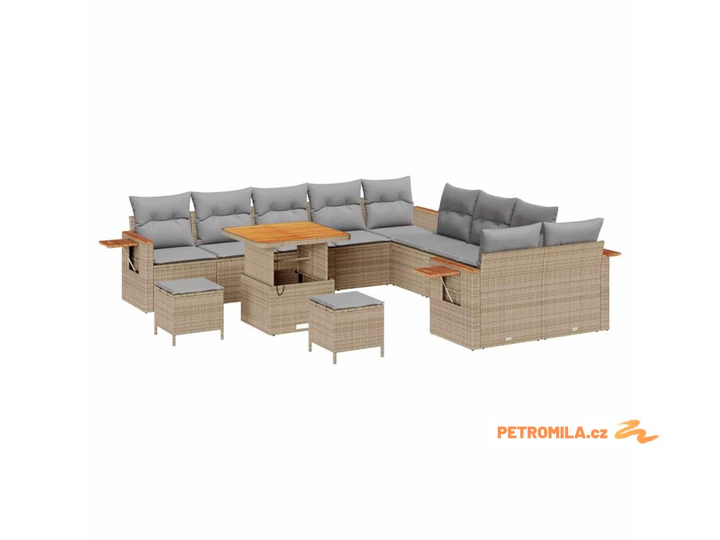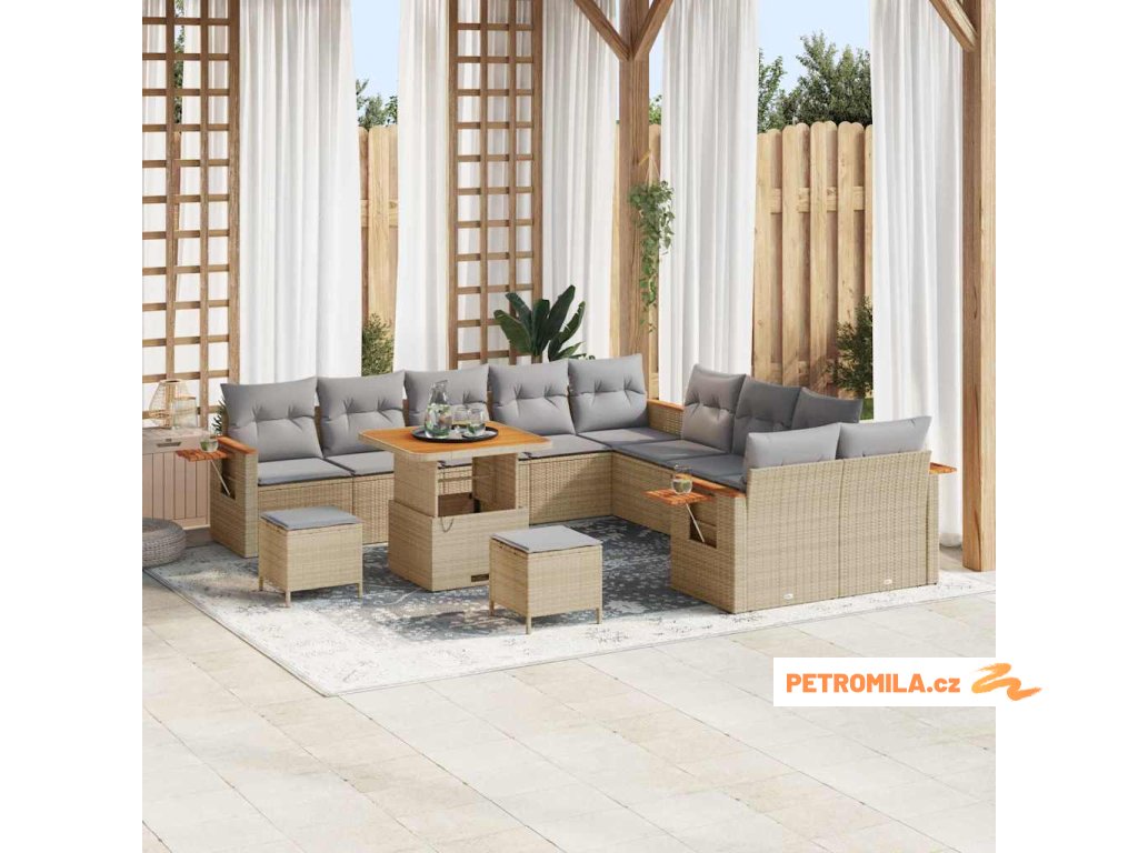 Sada zahradních pohovek s polštářem 13 pcs béžová a světle šedá