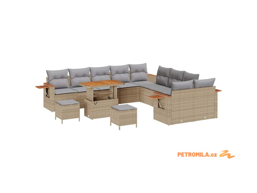 Sada zahradních pohovek s polštářem 13 pcs béžová a světle šedá