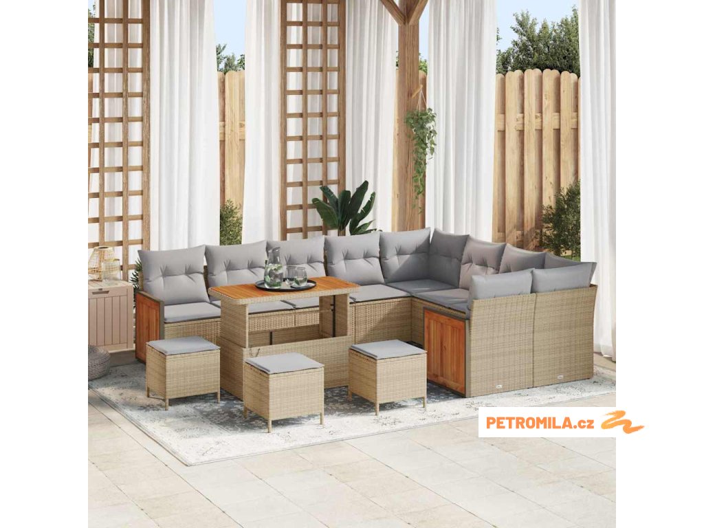 Sada zahradních pohovek s polštářem 13 pcs béžová a světle šedá