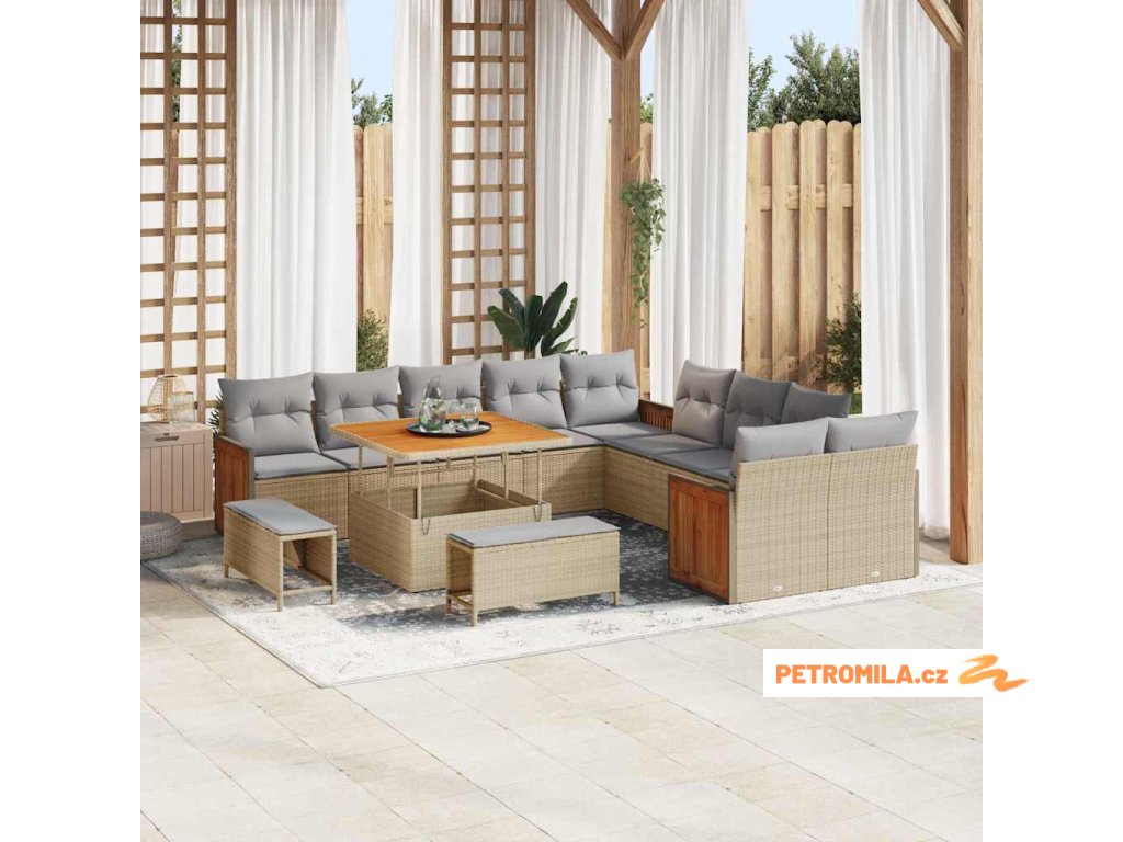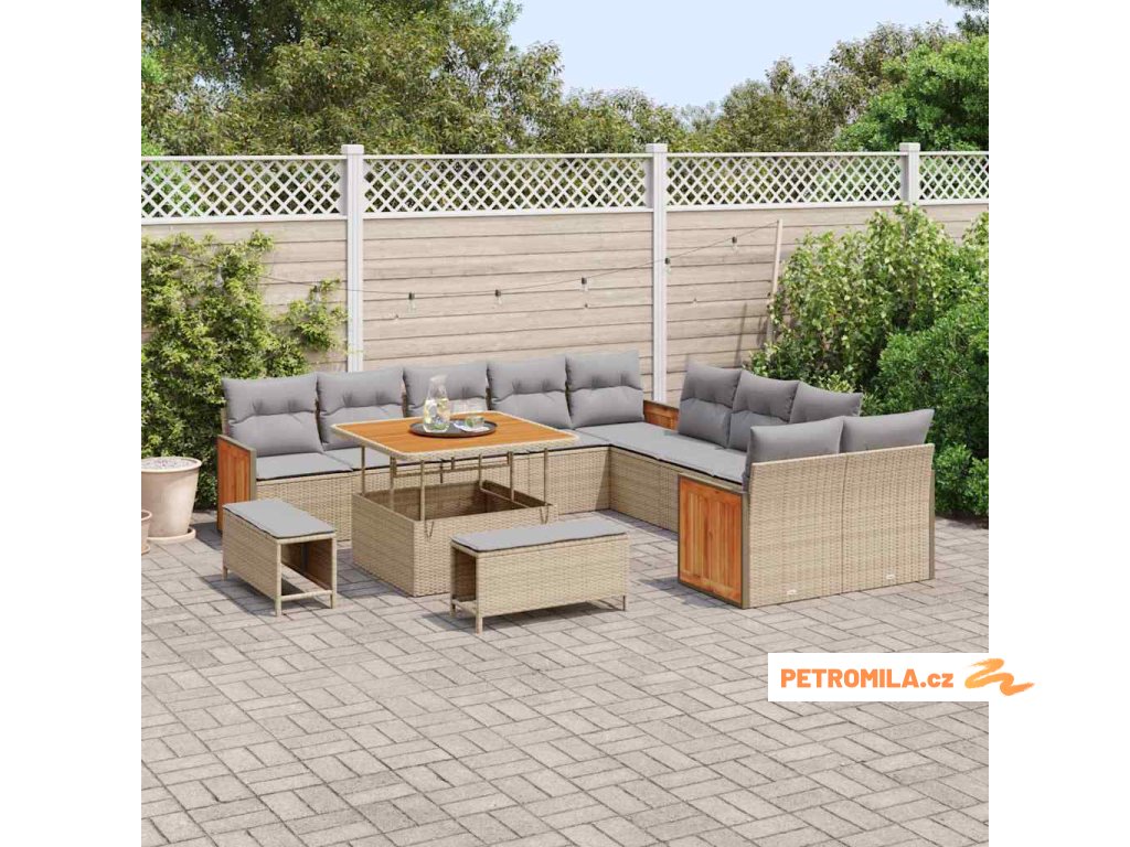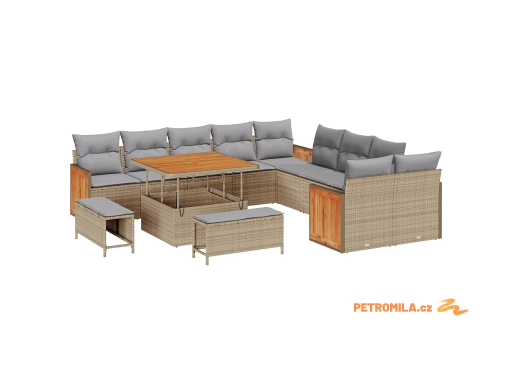 Sada zahradních pohovek s polštářem 13 pcs béžová a světle šedá